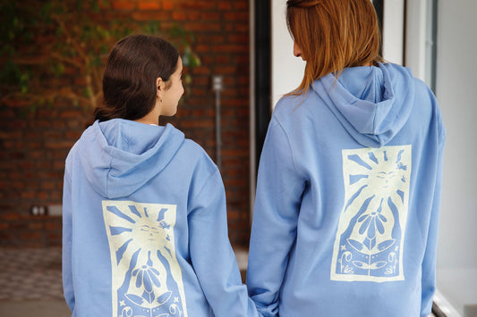 Polerón Hoodie Unisex Canguro floreciendo cielo