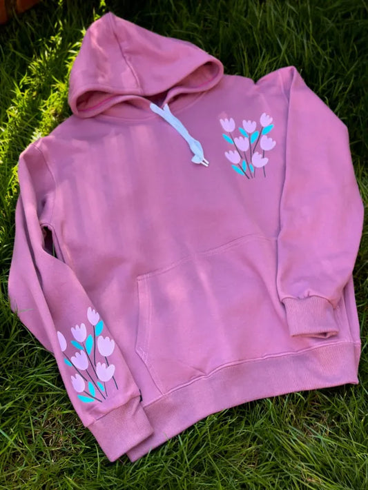 Polerón Hoodie Unisex Canguro Tulipanes Rosa